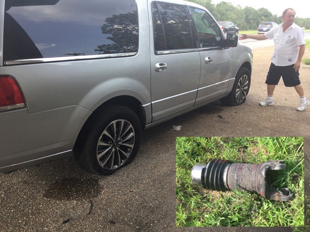 We reached the Gulf of Mexico and along its shores we nearly came a cropper when the Jack Shaft suddenly broke off a truck right in front of us